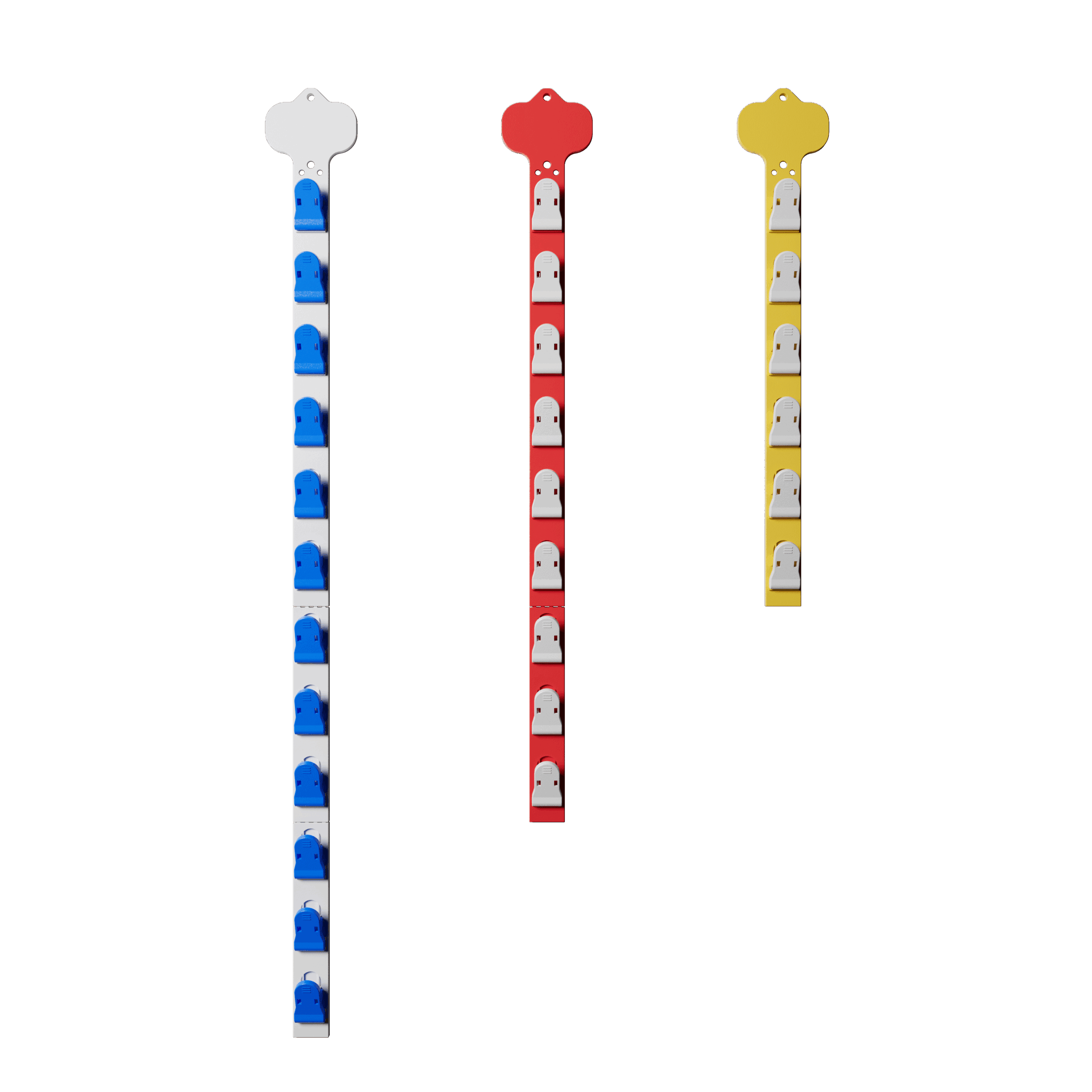 Plastic Hanging Clip Strips are designed specifically for supermarket shelves to display small and lightweight packaged goods in a clean and eye-catching way. Retailers often use bright, customized colors to attract children’s attention, making these strips ideal for snacks, confectionery bags, candy packs, small toys, trial-size products, and other impulse-buy items placed near shelf edges.