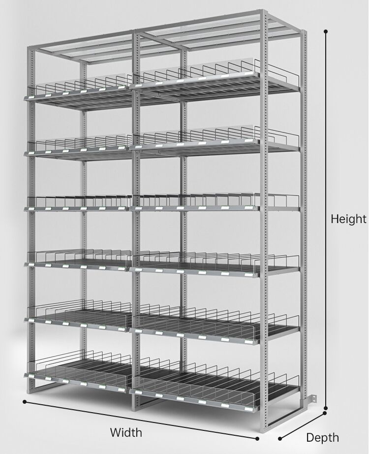 The Aluminum dynamic Rolling Shelving system is a versatile and innovative solution for optimizing storage and organization in various environments, such as retail stores, warehouses. This system utilizes gravity to facilitate the smooth movement of shelves, enabling easy access to stored items and maximizing space efficiency.