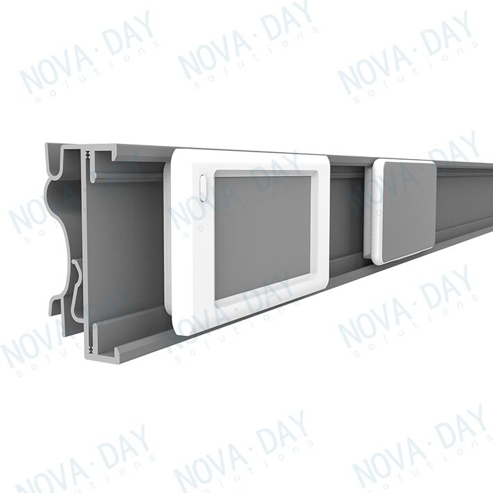 Various rail backs are also available here, allowing the ERS rail to be fastened to almost any type of rail. The glass-clear front of the rail protects the labels from water, dirt, dust, and access by third parties, and allows unrestricted views of the electronic price tags. Accordingly, it is still possible to read bar codes with a scanner through the rail.