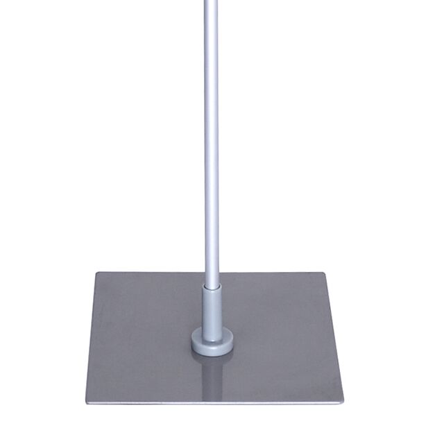 Consists of an aluminum pole, metal round base , pole joint and transparent T-piece.
