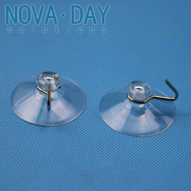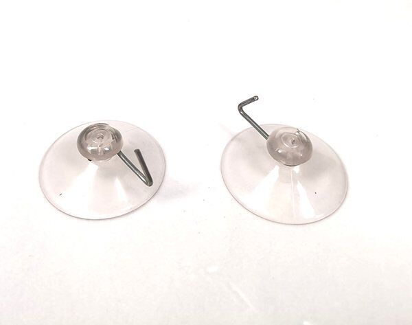 These suction cups are 40mm in diameter with a 15mm long hook, and have a small nub to help pull the suction cup off of the surface.